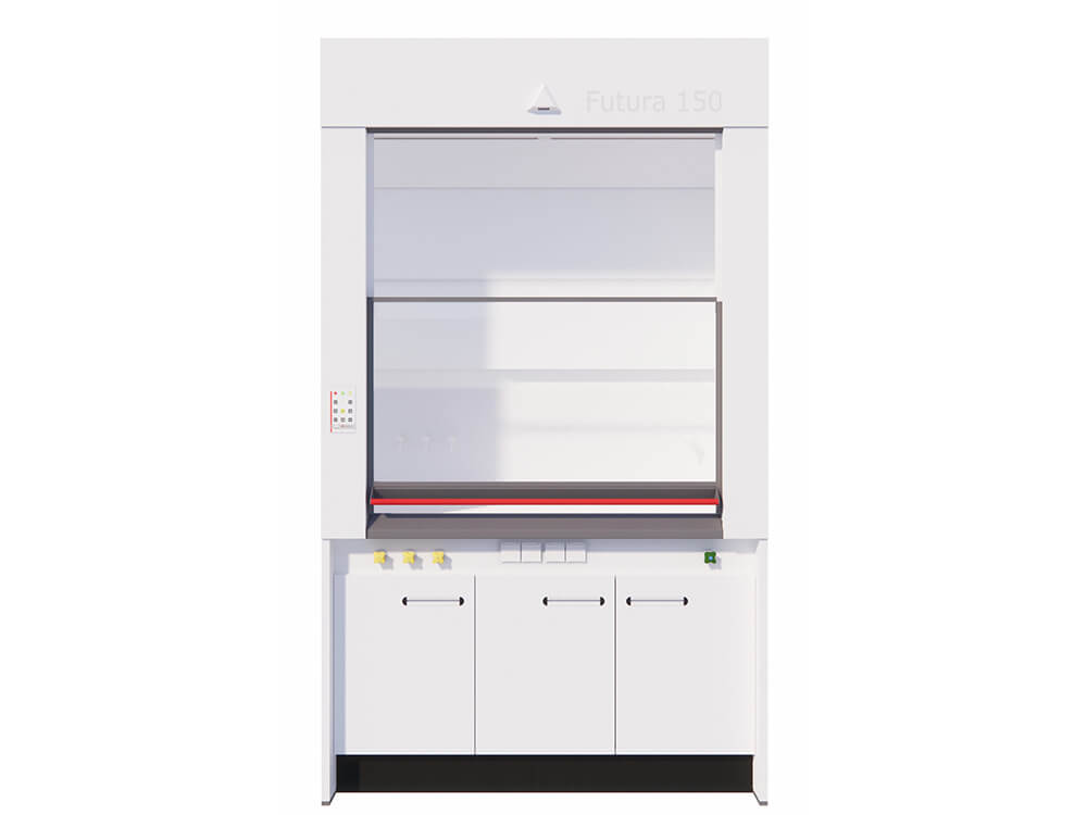 FUTURA zuurkast: biedt maximale veiligheid en gebruiksgemak bij werkzaamheden met gevaarlijke stoffen. Deze hoogwaardige laboratoriumkast is getest volgens EN 14175 en ontworpen voor optimale luchtstroming, duurzaamheid en comfort tijdens het werken. Onder het werkblad een bedieningspaneel voor elektra en de kraanknoppen. Futura zuurkasten worden standaard voorzien van luchtbewaking. De FUTURA zuurkast is ideaal voor laboratoria waar veilig gewerkt moet worden met zuren, oplosmiddelen of andere vluchtige stoffen. Geschikt voor onderwijsinstellingen, onderzoekscentra en industriële laboratoria. De afgebeelde zuurkast is voorzien van een onderbouw kast voor opslag van niet brandbare voorraad.